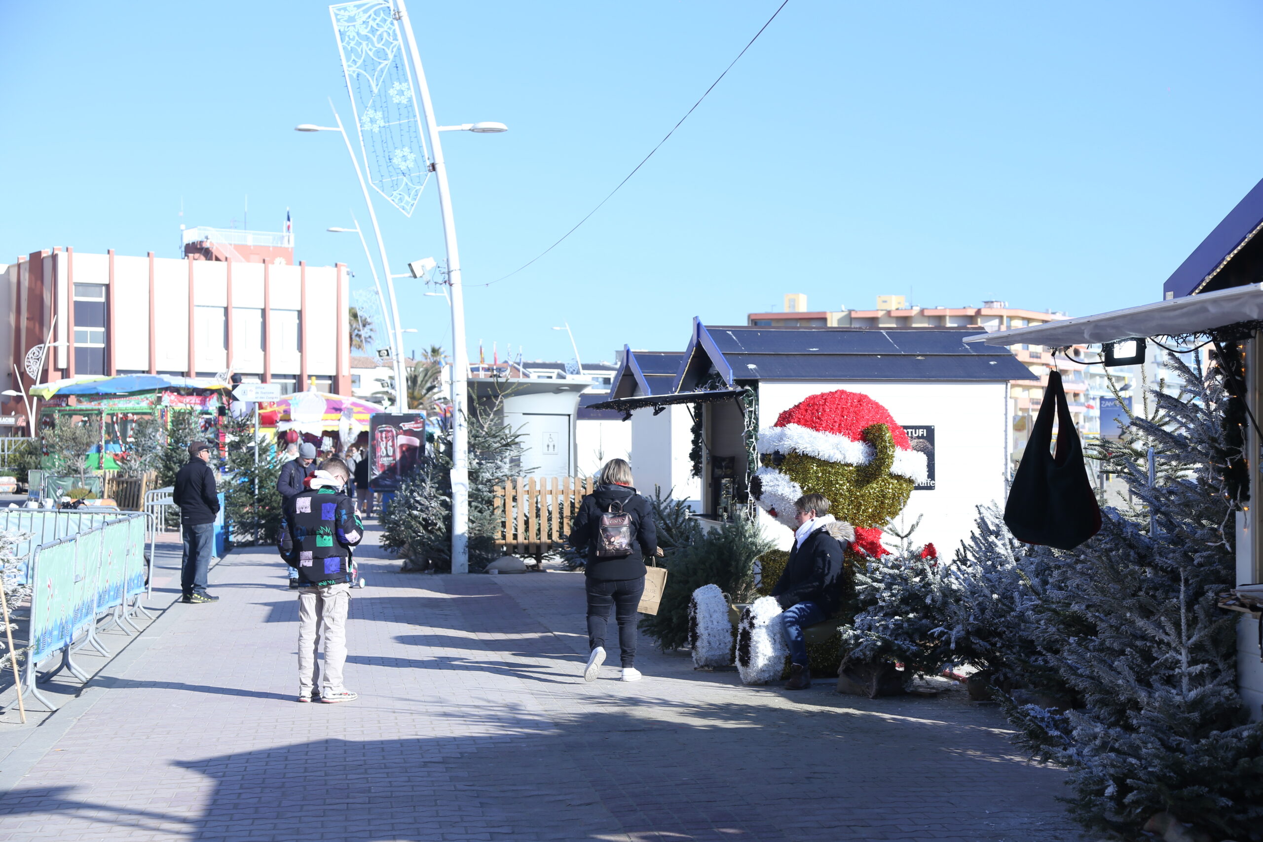 Découvrez notre village de Noël en bord de mer avec ses chalets et manèges.
